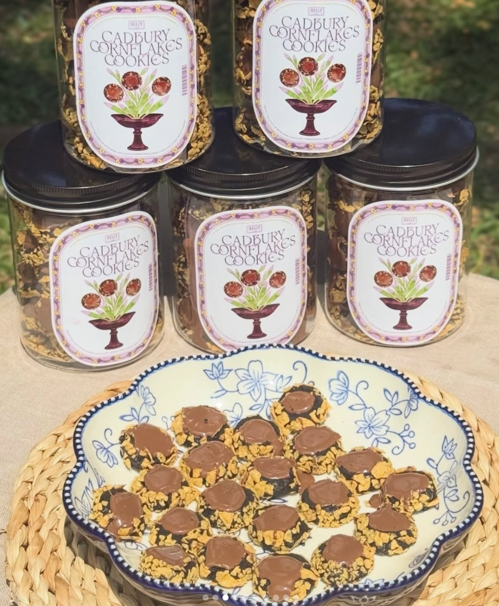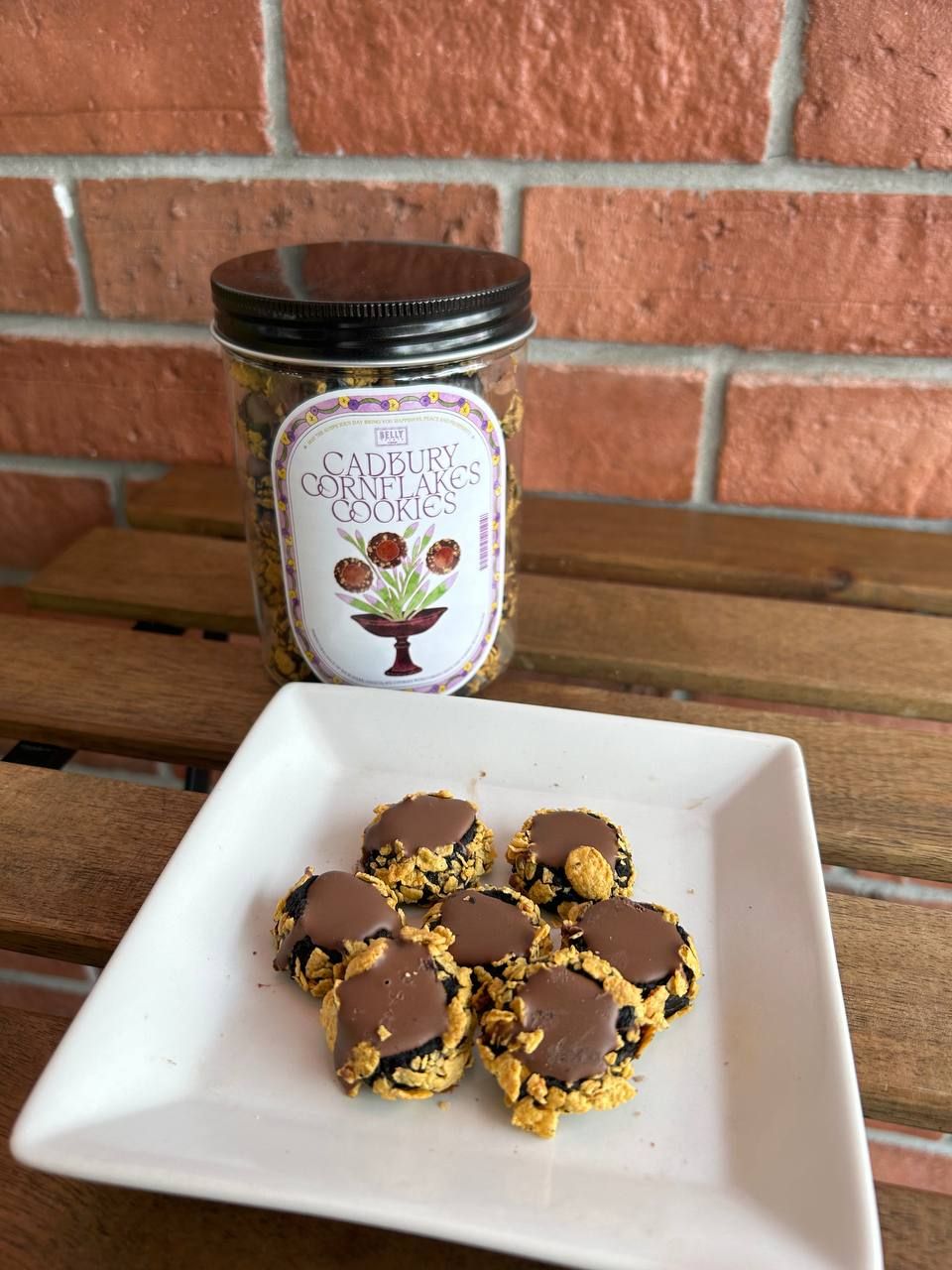 • Crunchy chocolate cookies coated with crispy golden cornflakes for a delightful texture.
