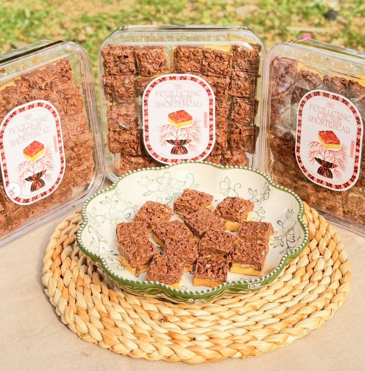 • Buttery shortbread layered with luxurious feuilletine chocolate crunch. • Delicate crispy flakes create a rich texture with every bite. • A premium indulgent treat that elevates any festive dessert table.