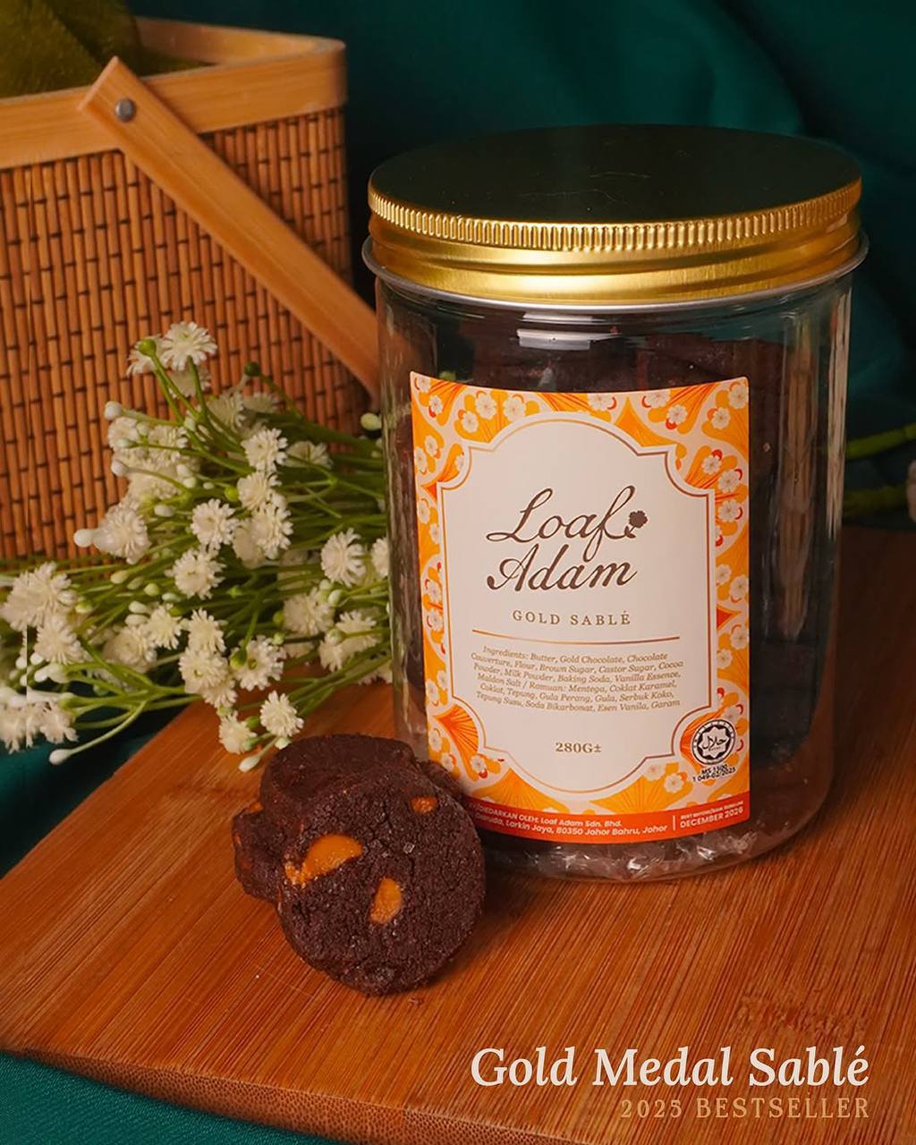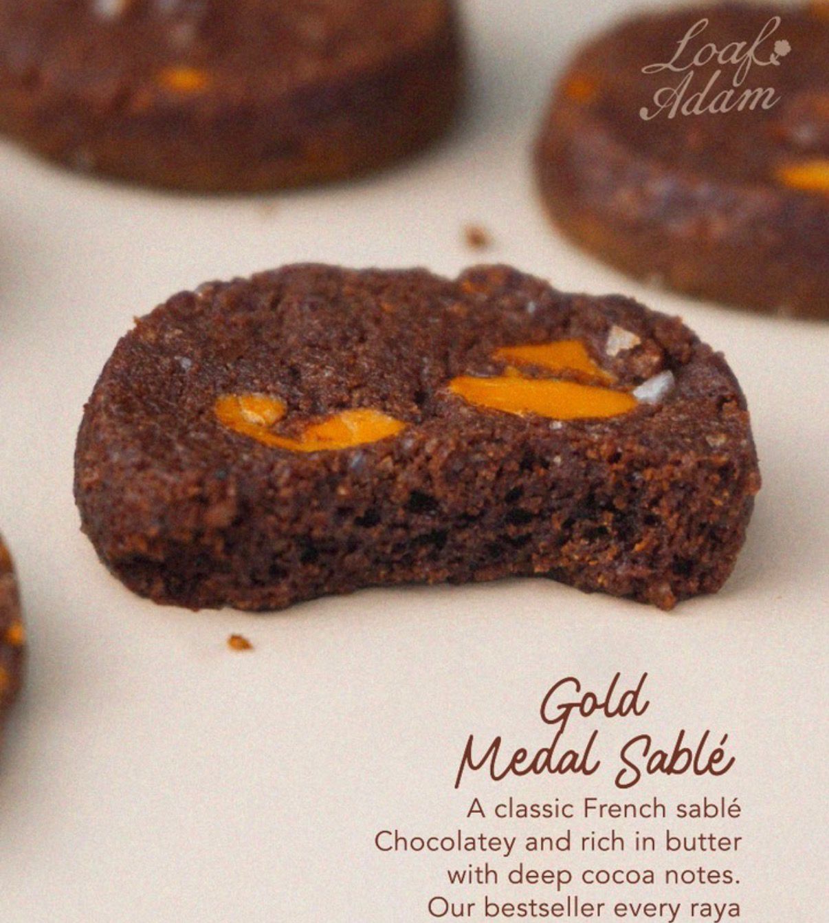 • Biskut sablé mentega premium yang dibakar hingga keemasan sempurna.
