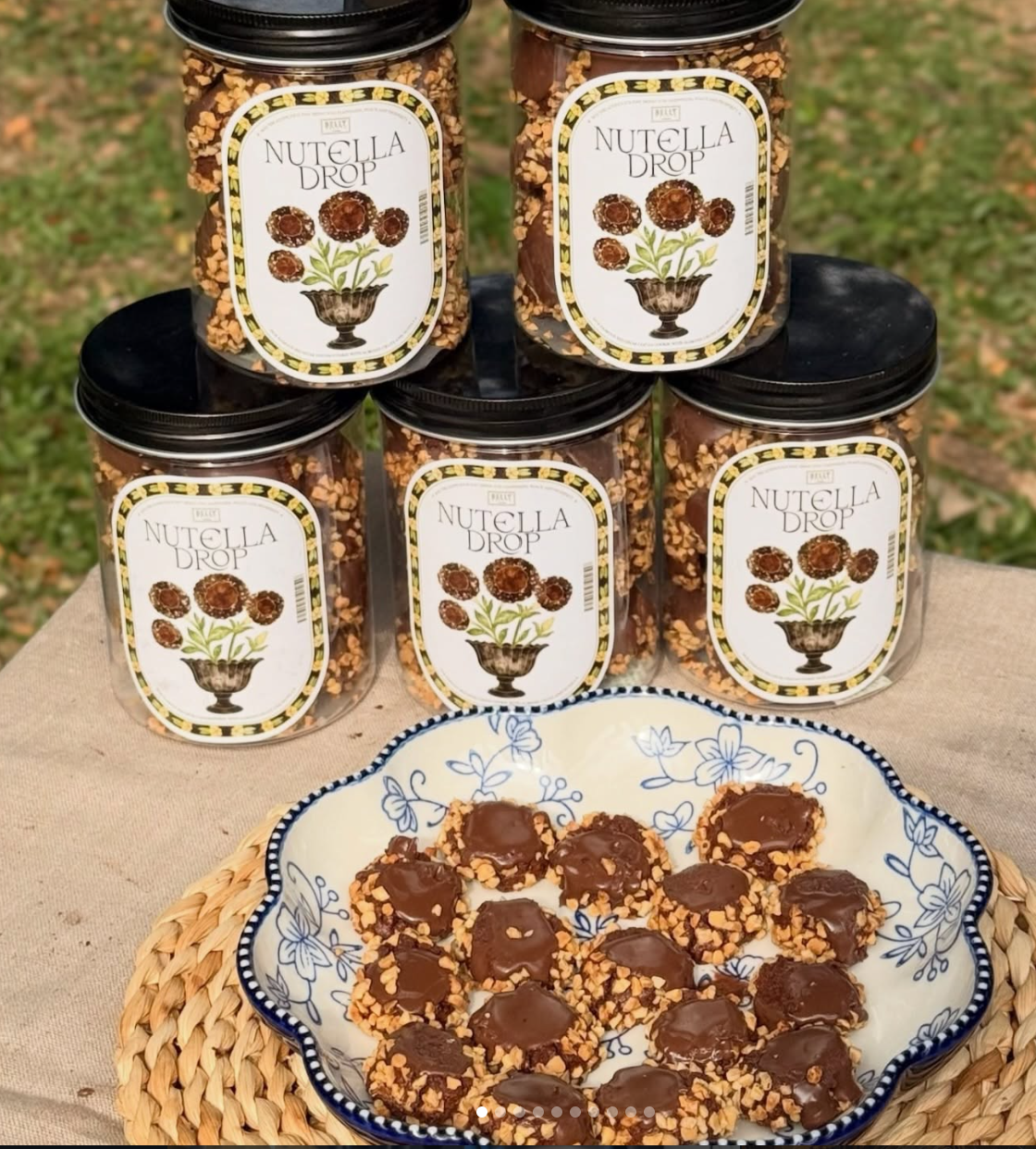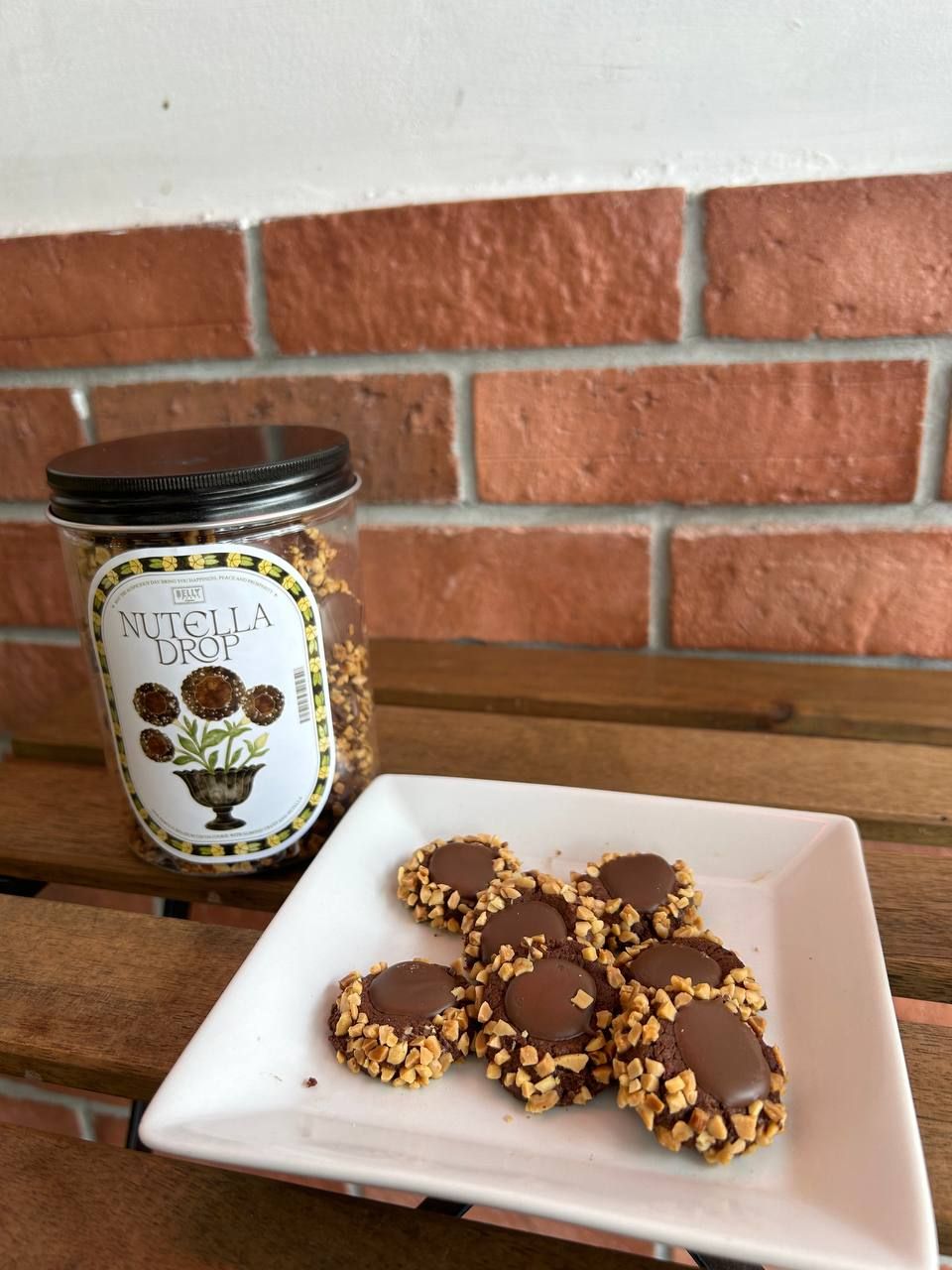 • Biskut coklat yang dihiasi dengan inti Nutella yang lembut dan berkrim.